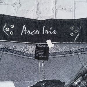 Keywords: Arco Iris Jeans, Studded Denim, Charcoal Gray Jeans, Juniors Size 7, Trendy Jeans, Slim Fit, Street Style Denim, Y2K Aesthetic
