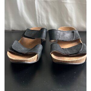 Arcopedico Cork Sole Wedge Slip On Sandal Adjustable Straps Black Leather 37 6.5