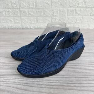 Arcopedico Mailu Shoe Sport Slip-On Knit Sz 37 Blue Black Wedge Washable Stretch
