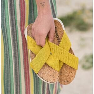 Arcopedico Pantanal Knit Mustard Yellow Sandal Nylon Cork Comfort 38 US7-7.5 NIB
