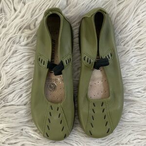 Arcopedico Shawna Mary Jane Green Leather Round Toe Stitch Accent Flats EUC 36