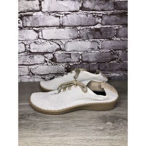Selling Arcopedico White Knit Fabric Beige Lace Up Sneakers Shoes Women Sz 41EU/10.5M US