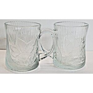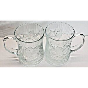 Arcoroc Canterbury Clear Crocus Embossed Vintage Mug Coffee Tea 10 oz set of 2