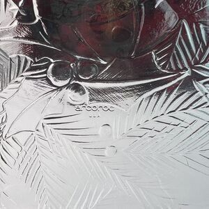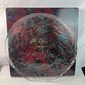 Add a touch of holiday cheer to your home with this beautiful Arcoroc Christmas Holly Candle Embossed Holiday Serving Platter. The clear glass platter measures 13 inches in length and width, and features a stunning design of a lite candle, holly leaves and berries. Perfect for serving tidbits or other small items, this traditional platter is a must-have for any Christmas occasion. Crafted in the United States and made of high-quality materials, this platter is both durable and stylish.