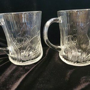 Arcoroc FRANCE Canterbury Crocus Glass Mugs Cups Coffee Tea Embossed 4” Set Of 4