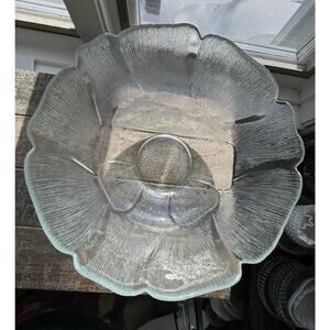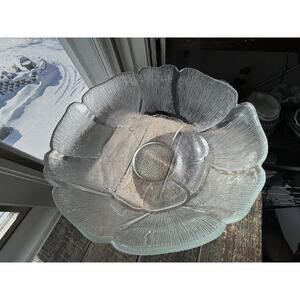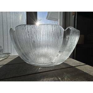 Great condition. No chips or cracks. The Arcoroc Fleur Extra Large Bowl is a vintage punch bowl from France. It is round, machine-made, and made of clear glass. The bowl features a Fleur pattern, with a glossy finish and a decorative design. It is 5 3/4 inches tall and has a diameter of 12 inches. The item is part of the Fleur Flower product line by Arcoroc.