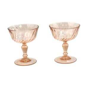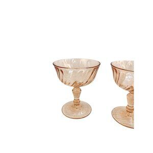 Arcoroc France Luminarc Rosaline Pink Swirl Champagne Sherbet Glass Mid Century 4.5"
