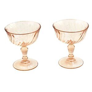 Add subtle elegance to your table with this vintage pink depression glass set. Their swirled design offers charm for dinners or special occasions.