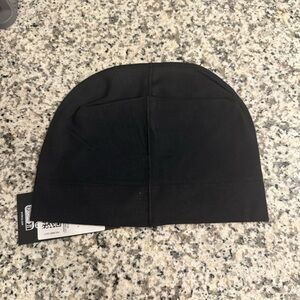 Stylish beige knit beanie with Arc'teryx logo. Perfect for cold weather.