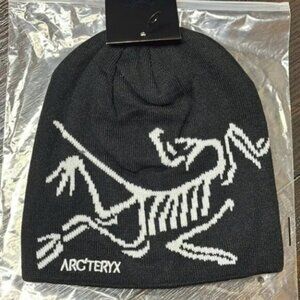 Stylish Arc'teryx beanie in black with a striking white logo. Perfect for cold weather.