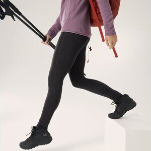 Great for runs, hikes, and high-speed adventures, these are everything you want your all-mountain leggings to be. Plus, pockets. The Chira material is abrasion resistant, breathable, and has excellent stretch. Secure and bounce-free, the 360° stretch-mesh waistband pocketing holds gels and smaller essentials. A zippered security pocket and easy-access thigh pockets add more storage. Mesh panels at the lower leg ventilate, a wicking finish manages moisture, and seam placement maximizes comfort.