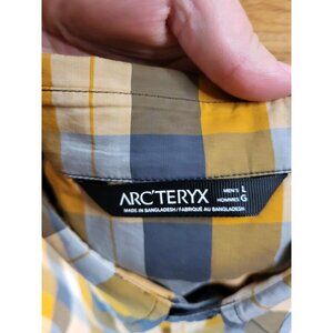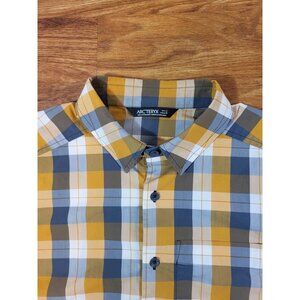 Arc'teryx Brohm Short Sleeve Shirt Mens Large Yellow Brown Plaid Check Hiking