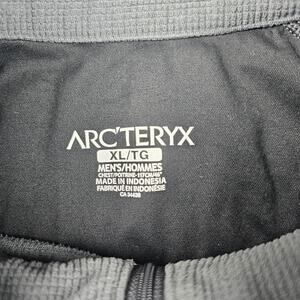 Features: Half zip front with stand collar; breathable grid fleece; flatlock seams; articulated paneling; drop-tail hem; embroidered Arc'teryx logo at left chest