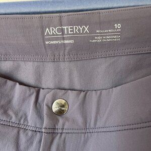 used but still very functional arc'teryx gamma pant women's size 10R in Moonstone colorway