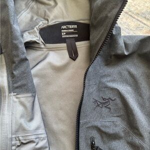 Arc'teryx women's jacket in charcoal. Features a hood and zip closure. Works fantastic and worn a handful of time. In excellent condition.