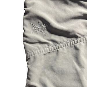 Arc'teryx Hiking Shorts Mens 34 Gray Nylon Hiking Outdoor Zip Pocket Performance. Lightweight and quick dying. In EUC with one flaw. See pic for slight stain / mark on front left pocket. Measurements in pics for your review.