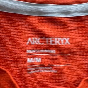 Arcteryx Mens Cormac Crew Shirt Medium Orange Short Sleeve Reflective Logo