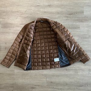 DESCRIPTION: Smart materials, clean design and freedom of movement make the Rico a versatile piece for city streets. The lightweight Rico Jacket has an updated collar for a bomber-style urban look. Warm 750 fill power goose down in the body and Coreloft® synthetic insulation in the shoulders hold the heat, and the square quilting minimizes down shift and keeps you warm on crisp days. The Arato™ 30 nylon face fabric is lightweight and durable with a subtle texture. A DWR finish adds moisture resistance. Redesign includes the lightweight yet durable Arato™ 30 face fabric and an updated collar for a bomber-style jacket.