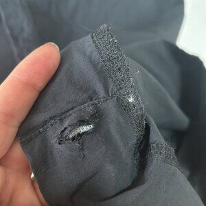 Flaw - a cut or tear inside the hem of each pant leg. Could be easily resewn. Not visible when worn, does not affect the wear at all.