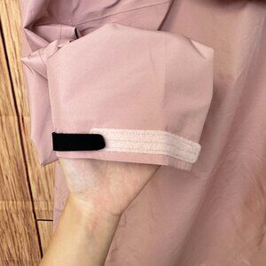 This soft pink hooded jacket from Arc'teryx, a premium Canadian outdoor brand, features a drawstring hood that effectively protects against wind and rain, and can be adjusted to suit your needs. The iconic Arc'teryx brand logo is featured on the front for easy recognition.