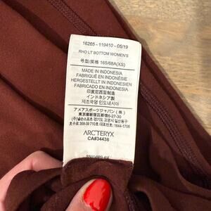 Stay warm and sleek in these Arc'teryx Rho LT Bottoms—your cold-weather MVP. Designed as a next-to-skin base layer, they feature light insulation, excellent stretch, and moisture-wicking properties to keep you dry and cozy whether you're skiing, hiking, or just trying to survive winter with grace. Color is a rich bordeaux, a rare and flattering shade for outdoor gear lovers.