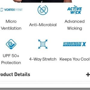 VORTEX VENT DELIVERS MORE AIR MOVEMENT AND MORE COOLING- Our exclusive, micro-ventilated fabric construction allows more air to circulate, helping keep you cool.HYDROFREEZE X PROVIDES INSTANTCOOLING — Our revolutionary technology uses a multi-stage process to keep you cool and comfortable — all thanks to your own perspiration and movement.BREATHABLE, COMFORTABLE FABRIC -The lightweight, 4-way stretch fabric is free-flowing and flexible, so it moves easily and naturally with your body.