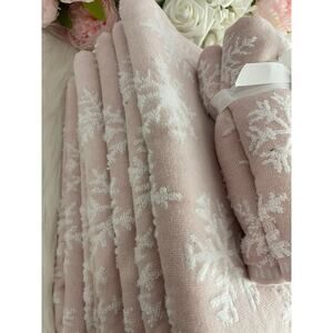 Arctic Holiday 6 Pc White SNOWFLAKE PINK Christmas Bath & Hand Towel Set NWT