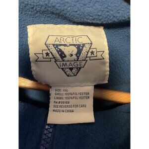 "Arctic Image Navy White Mens Hooded Fleece Full Zip Jacket Sz XXL" is a stylish and comfortable jacket from Arctic Image. This XXL size jacket is made from high-quality polyester and comes in a navy and white color combination.