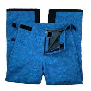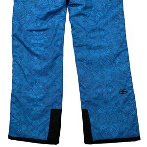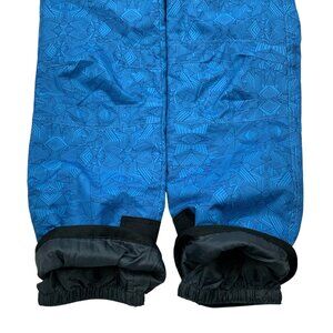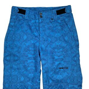 This Arctic Kids Boy's Snow Pant features a straight leg, lining, insulation, adjustable waist, zip fly, reinforced knees/seat, hook/loop with dual hook/eye front closure, pockets, black trim, belt loops, logo placement and blue geometric design.