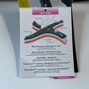 • ThermaLock™ Fabric: Water-resistant and wind-resistant shell.