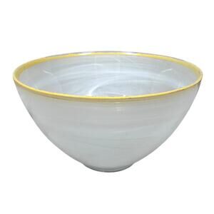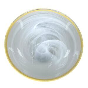 ArdaCam Art of Tabletop Turkish Glass Bowls 6" White Swirl Yellow Rim Lot of 2