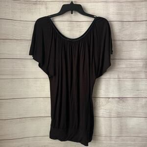 Arden B Black Blouse Short Sleeves Flowy Flattering Fit Slight Ruching Size sS