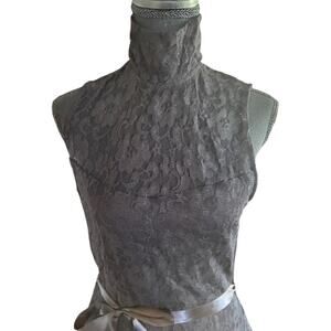 Arden B. Black High Neck Lace Mini Dress with Satin Waist Tie – Size M – NWT