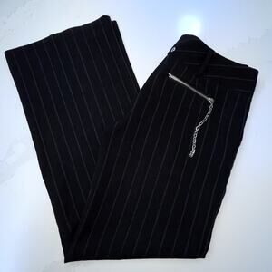 Arden B Black Pinstripe Wide Leg Trouser Pants Gromet Chain Womens 2 Black