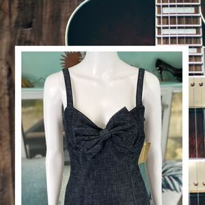 Arden B Blue Wash Denim Jean Sweetheart Neckline Strappy Mini Dress Size Med