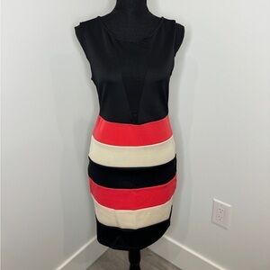 Arden B. Bodycon Black Mesh Front Midi Dress (L)