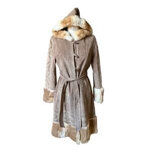 Arden B. Brown Penny Lane Coat in 100% Leather & Rabbit Fur Size Large