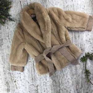[Arden B.] Faux Fur Wrap with Suede Leather Trim Size M Medium 3/4 Sleeve