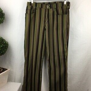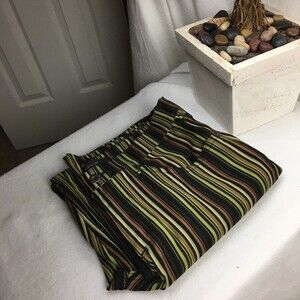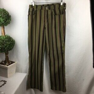 Arden B Green & Black Striped Velvet Soft Retro Flair Trouser Pants 8