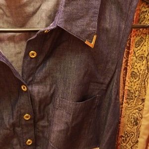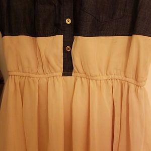 Casual and flirty nude and denim dress... features a high low style and a cute pocket at the top! The nude with the denim is so in right now!