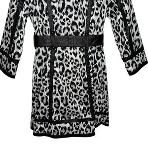Arden B. Leopard Print Leather Trim Belted Trench Coat Size L Black White