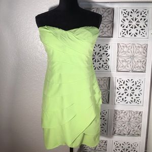 New with Tags still on!! This Tiered Dress with Sweetheart neckline is Perfect for Special Occasions. Fabric & care in Photos. Measurements taken with garment lying flat. Length From Top to Bottom: @30 inches. Width from side seam to side seam across front chest top @16”, making Bust @32” and the front seam to Rubber Gripper strip around inside of dress to hold it in place over Bust. Lightly Padded Bust. Non smoking household. D1/5