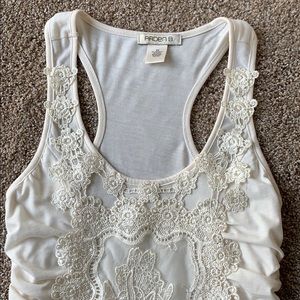 Arden B. Racerback, size S, beautiful off white cream color. Looks great with a tan. Soft fabric with some stretch. Good condition, no holes, rips, tears or stains. Bundle 3 or more listings from my closet and save 30% off your purchase.