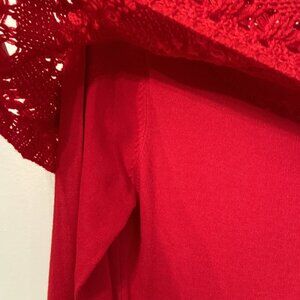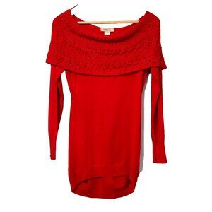 Arden B Red Off-Shoulder Crochet Tunic Sweater Medium Holiday Y2K