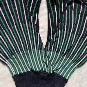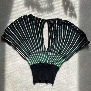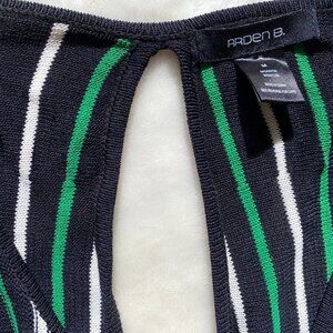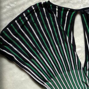 Arden B Striped Knit Cutout Top Green White Black Size M Y2K