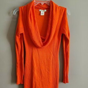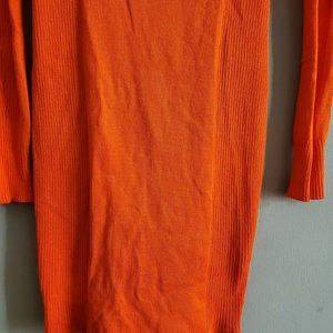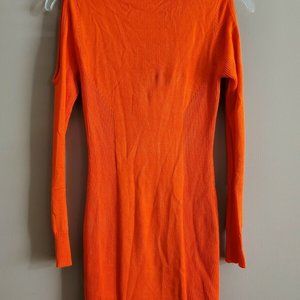 Arden B Sweater Dress Small Bright Orange Deep Cowl Long Sleeve Body Con Cold Shoulder