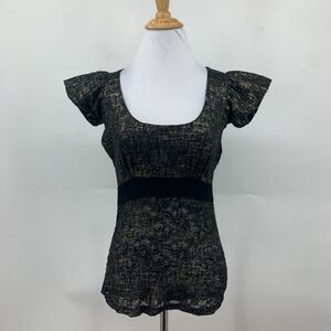 ARDEN B SHIRT WOMENS S BLACK GOLD LACE METALLIC NON IRON SCOOP NECK CAP SLEEVE