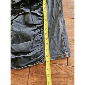 This is an awesome jean skirt in excellent condition and comes from a clean and smoke free home. Has the perfect amount of stretch and is ruched in the front. Please see photos for measurements and details.