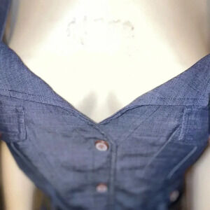 Arden B Women's Blue Sweetheart Neck Button Front Midi Shift Dress Size S