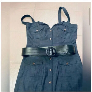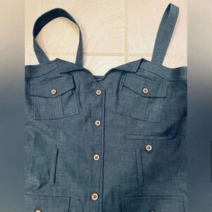 Elevate your wardrobe with this stunning Arden B midi dress in a captivating blue denim hue. The sweetheart neckline and wide straps create a flattering silhouette, while the shift dress style ensures comfort and elegance. Crafted from a blend of rayon, cotton, polyester, and spandex, this dress offers a perfect balance of softness and stretch. The button-front closure adds a touch of sophistication, making it ideal for brunches, garden parties, or casual evenings out. Size S, regular fit. Pre-owned in excellent condition.